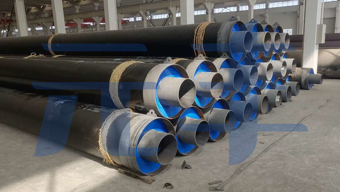 硬質聚氨酯噴涂聚乙烯纏繞預制直埋保溫管采用聚氨酯噴涂設備將混合均勾的聚氨酯原料連續噴涂到鋼管外表面,形成聚氨酯保溫層;保溫層成型后使用擠出設備將熔融的聚乙烯片材連續纏繞到其外表面,形成連續密實的聚乙烯外護層的工藝方法制作...